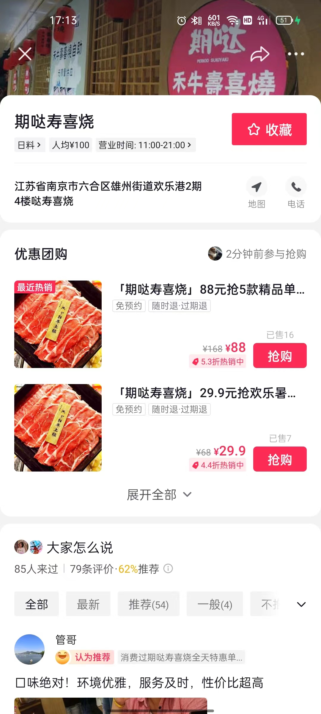 今天再来给大家介绍一个夺冠生活圈南京市六合区的站点打造的餐饮行业的商家案例,商家名字叫做【期哒寿喜烧欢乐港店 】。