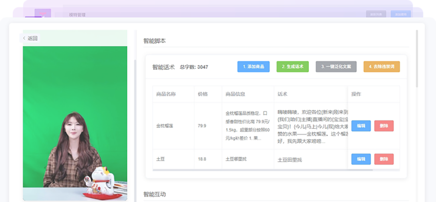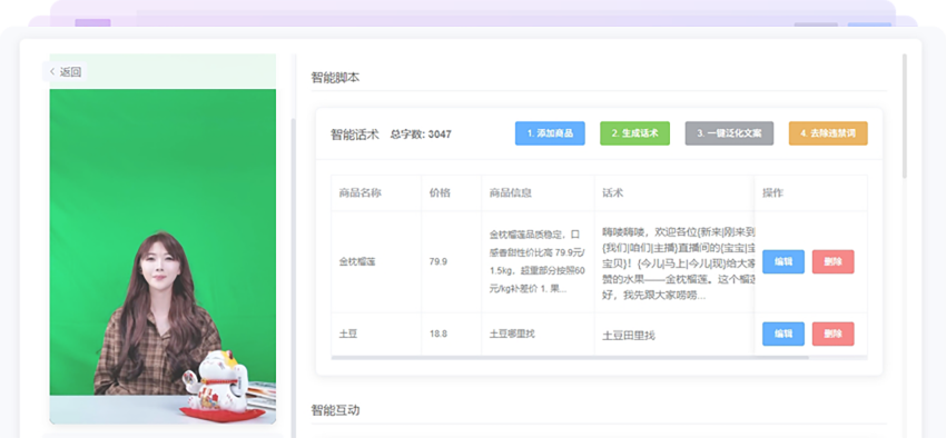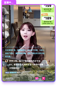实景画面+自动讲解+智能回复+自动弹出商品+直播贴片+背景音乐